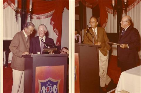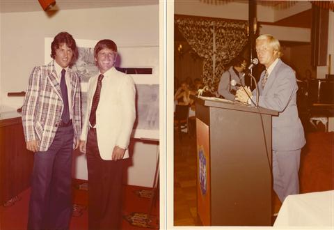 While never one to want a fuss made over him, my father was pleased to find that his friends and admirers at La Gorce weren’t about to let him just walk quietly into the night. In late spring of 1974, Jack and Barbara Nicklaus, the noted golf instructor Bob Toski, 1941 PGA Championship winner Vic Ghezzi, New York Yankees owner Dan Topping and scores of other La Gorce members and guests – including the reigning world champion backgammon player, Tim Holland – gathered for a send-off dinner for Dad and Mom in the main dining room of the La Gorce clubhouse, up the beautiful, broad staircase from the large sitting area on the club’s main level. Guests could hear live music as they entered the front door and were greeted by a display of photos of my dad, including some from his childhood in Oklahoma City and others from his days on the early pro-golf circuit with Ben Hogan, Byron Nelson and other all-time greats. And there were, of course, photos of Dad with Jack Nicklaus.
