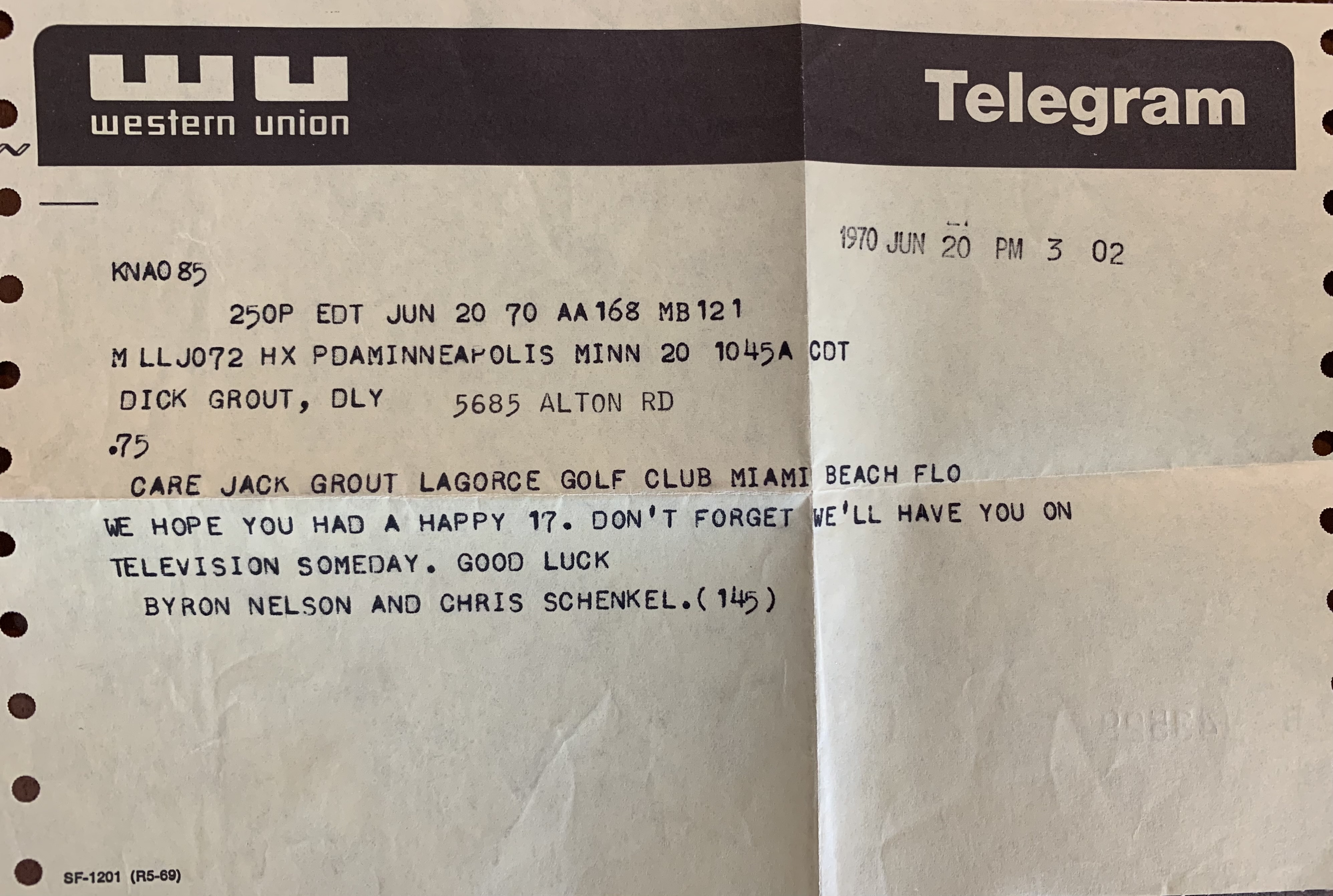 In a letter to Jack Grout after winning the 1986 U.S. Open, Raymond Floyd wrote, “I want you to know that I could not have accomplished all that I have done without you. Your patience, your tutelage and your inspiration has been the formula of my success. I sincerely thank you.”