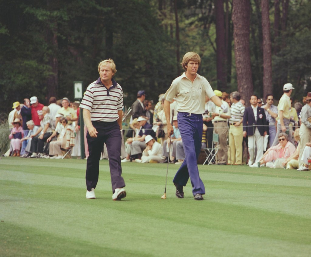 Jack Nicklaus and Fred Ridley stride down the No. 14 fairway during the 1976 Masters Tournament