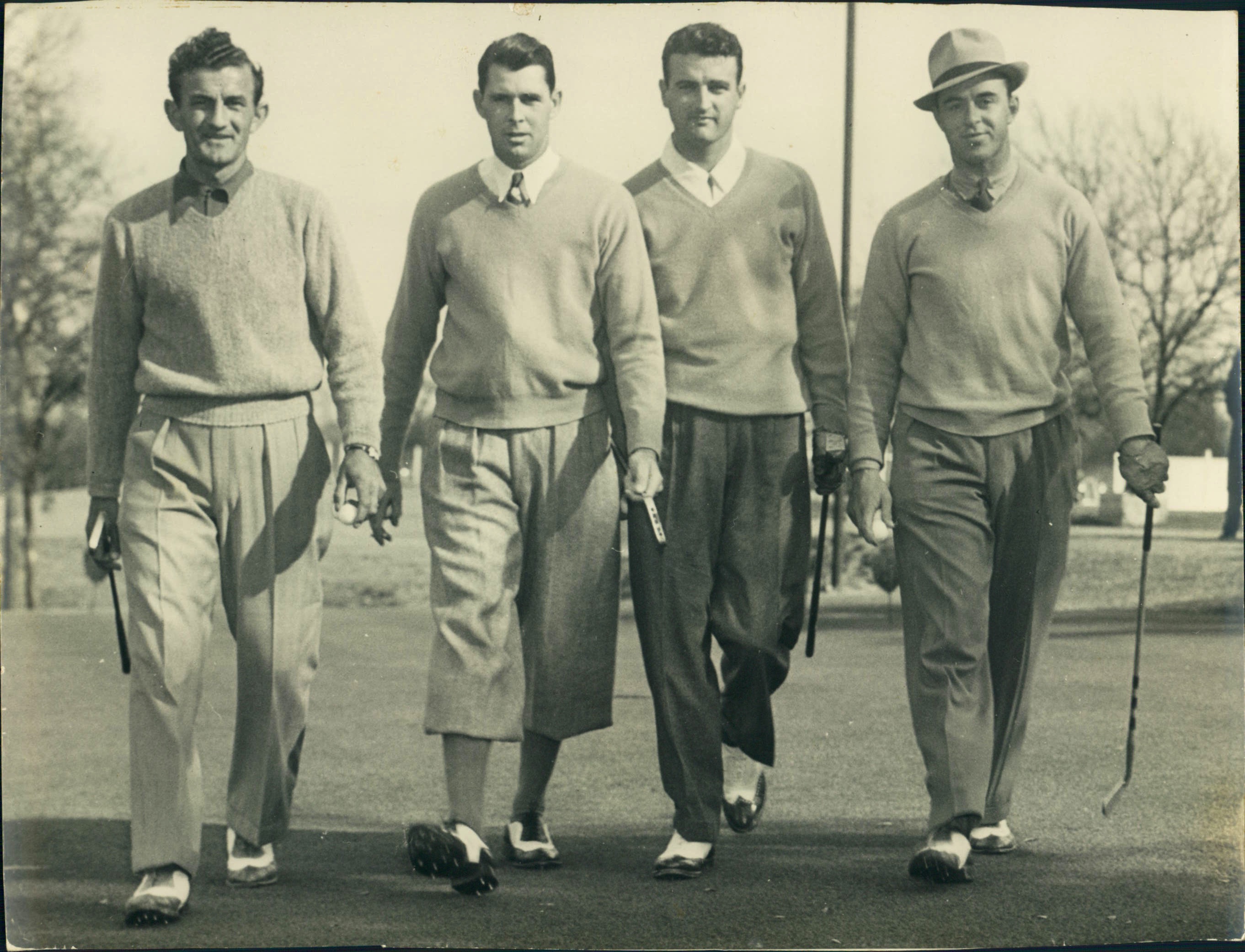 January 1, 1938, Johnny Revolta, Henry Picard, Jack Grout and Sam Snead during their Four-Ball Match at Colonial Country Club in Fort Worth, Texas