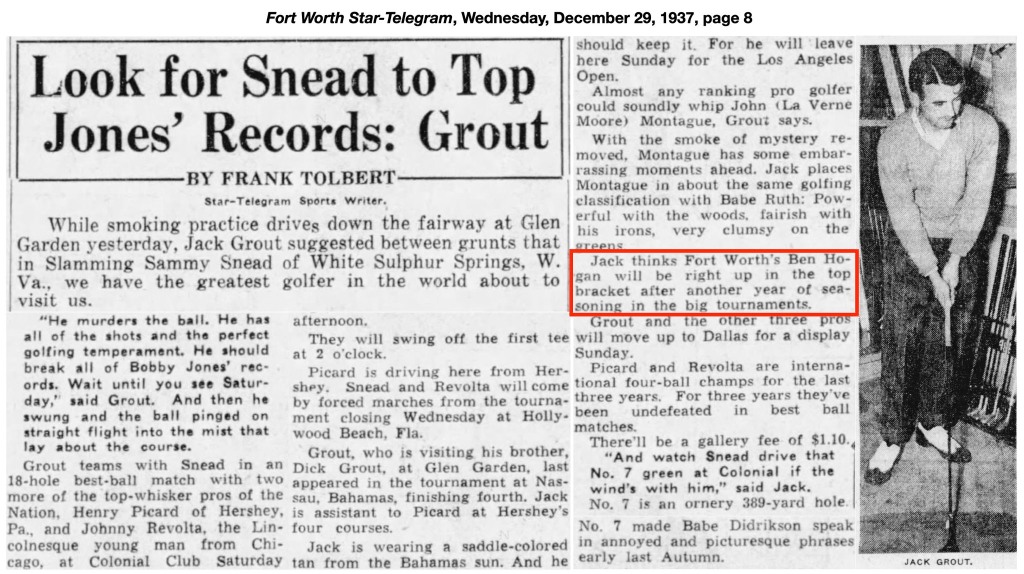 Jack thinks Fort Worth’s Ben Hogan will be right up in the top bracket after another year of seasoning in the big tournaments.